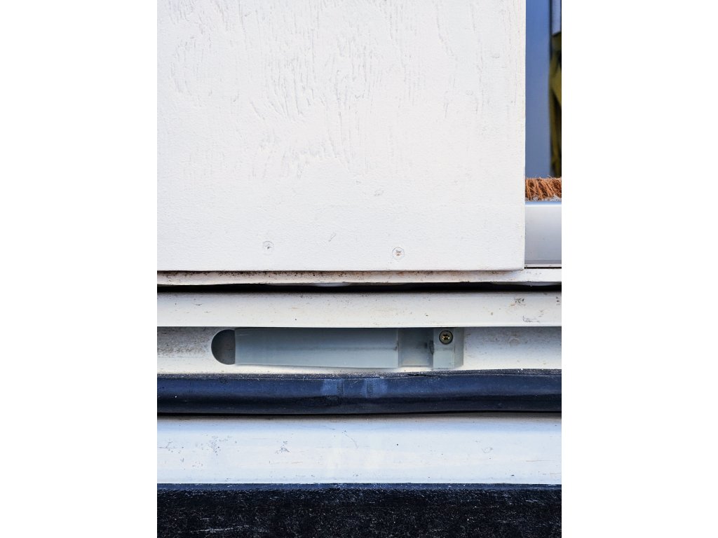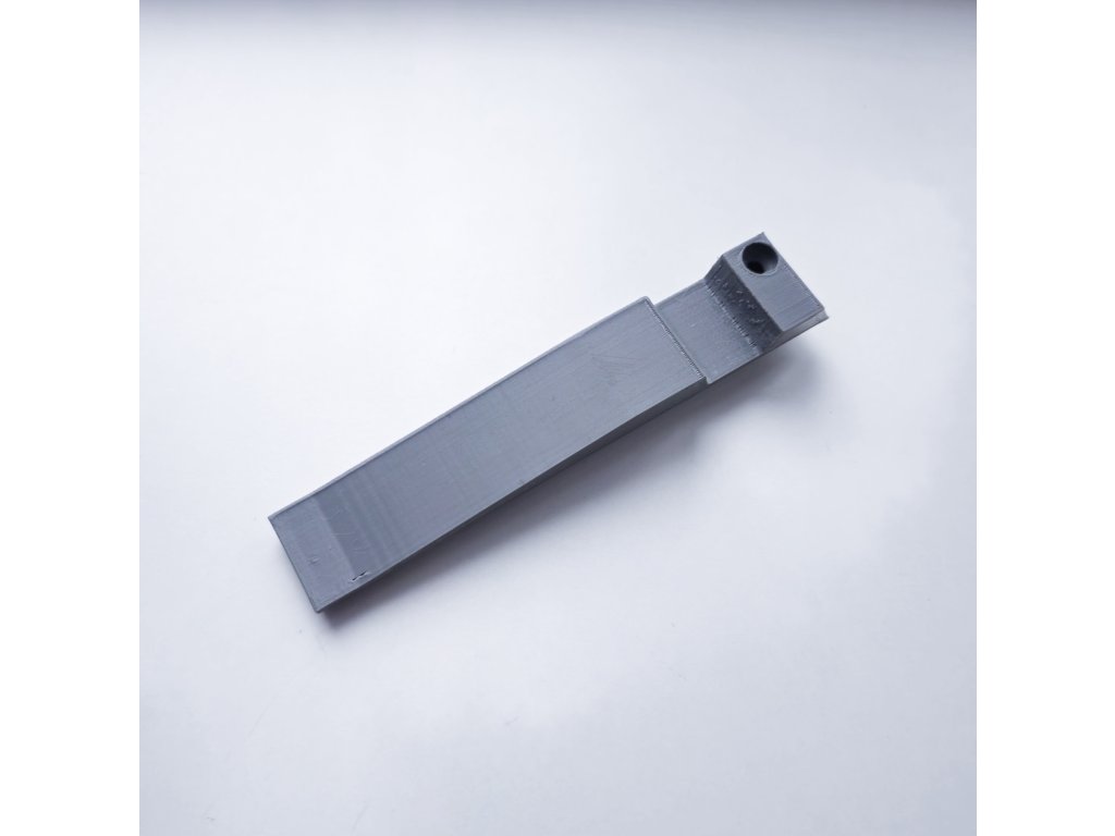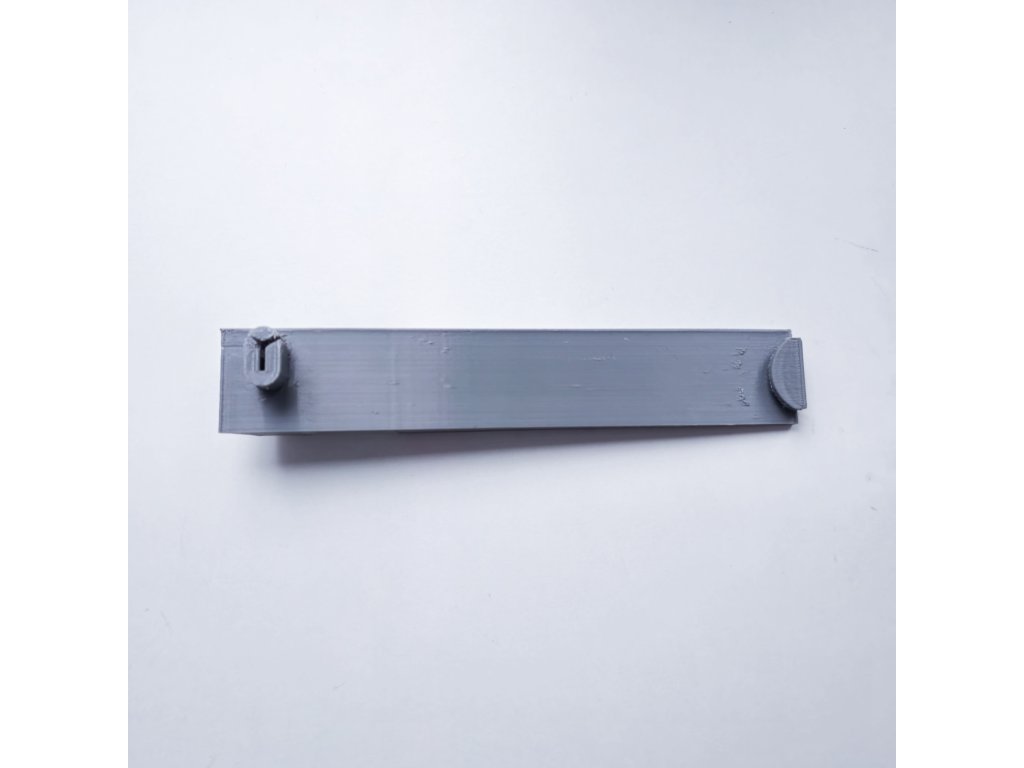 Zarážka se instaluje BEZ lepení a vrtání. Jednoduše ji vložíte do již existujících otvorů ve spodní kolejnici a zajistíte jedním vrutem (viz. foto).